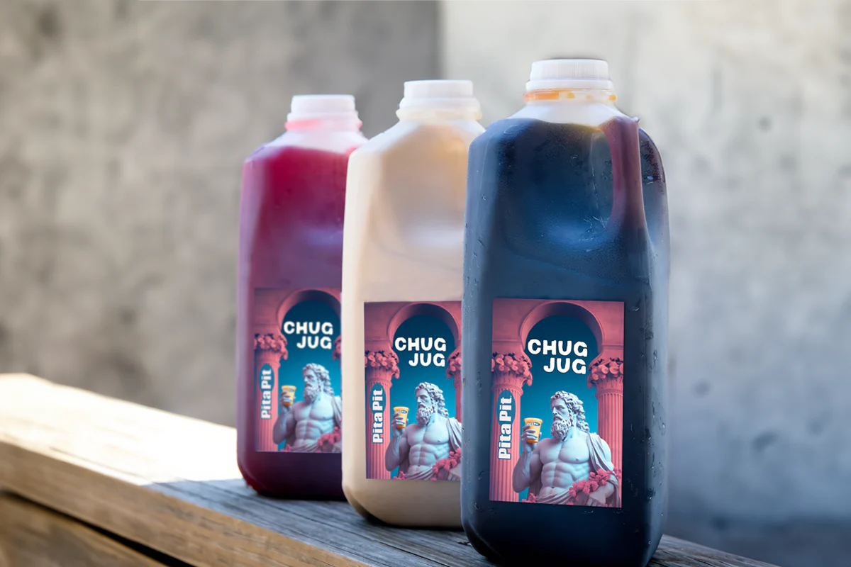 Pita sandwich Lunch Boxes include a sandwich, chips and a cookie. Salad and Brown Rice Quinoa Lunch Boxes include a salad OR Brown Rice Quinoa Bowl, pita wedges and a cookie. Seasoned chicken, bacon, avocado, shredded lettuce, tomatoes, mozzarella and jalapeno ranch dressing.